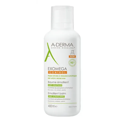 A-derma Exomega Control balzam 400ml Emolijentni balzam koji brzo umiruje suvu atopiji sklonu kožu i kontroliše osećaj nadraženosti koji je posledica suvoće kože.